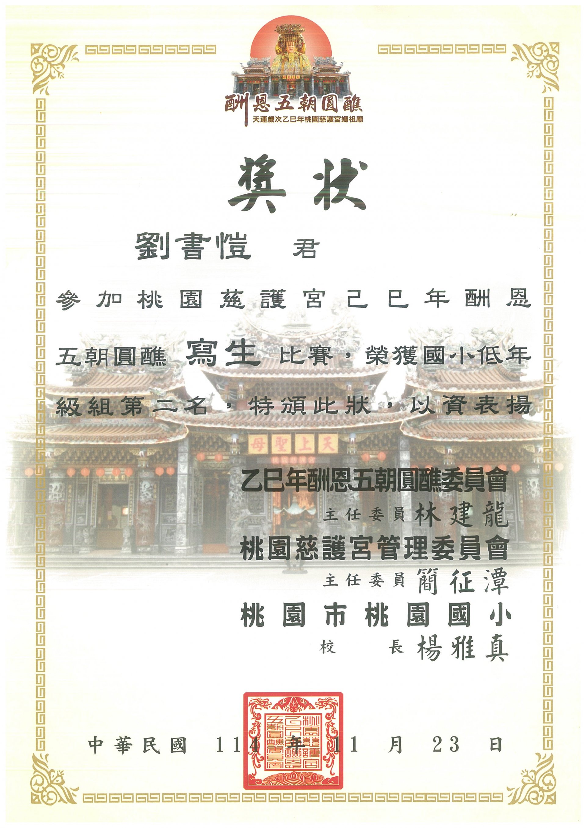 桃園慈護宮己巳年酬恩五朝圓醮寫生比賽 低年級組第二名