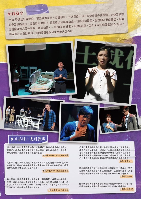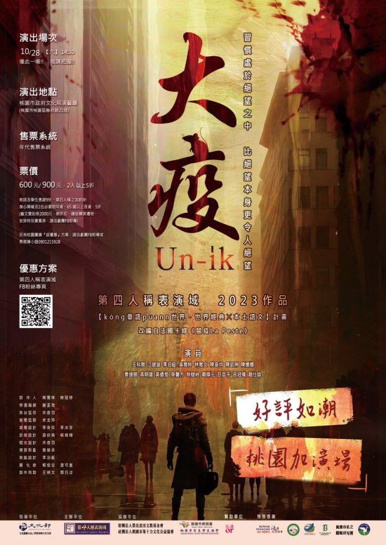 三、票券登記表單網址https://forms.gle/1paGeEfNwsNzPJM28,自即日起至10月24日晚上8點止開放登記,如有疑問請洽劇團聯絡人:陳娜娜老師,電話0901-