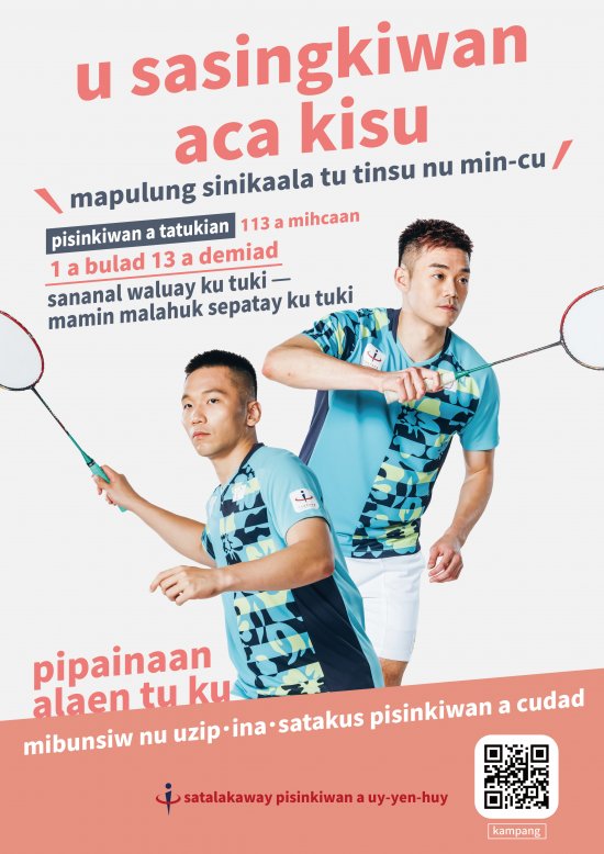 說明: 一、依據中央選舉委員會(下稱中選會)112年12月19日中選綜字第11230505811號函辦理。 二、第16任總統副總統及第11屆立法委員選舉定於113年1月13日投票,為加強對原住民族宣導,鼓勵國民年滿20歲踴躍投票,中選會製作各族族語宣導海報,包括阿美族、泰雅族、排灣族、布農族、卑南族、魯凱族、鄒族、賽夏族、雅美族、邵族、噶瑪蘭族、太魯閣族、撒奇萊雅族、賽德克族、拉阿魯哇族及卡那卡那富族等,皆已上傳中選會網站。