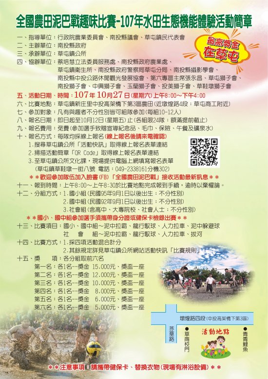 南投縣草屯鎮公所辦理「2018工藝稻草文化節系列活動-全國農田泥巴戰趣味比賽」