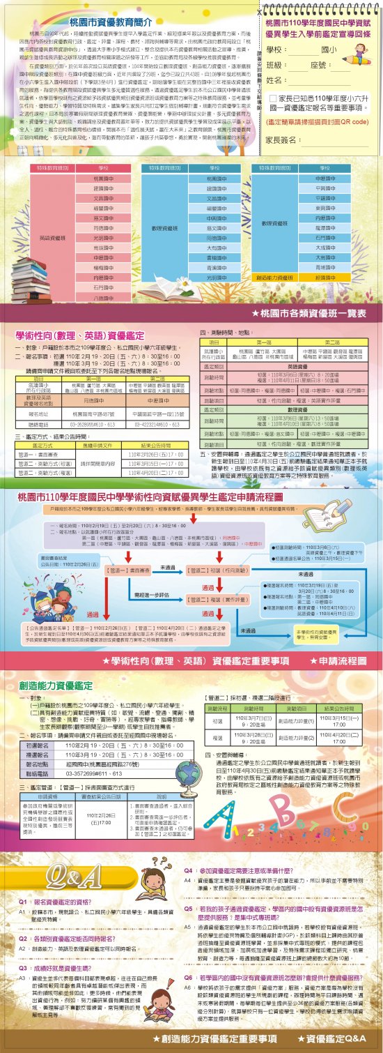 (1)桃園市110學年度資賦優異學生入學前鑑定流程及相關注意事項。
