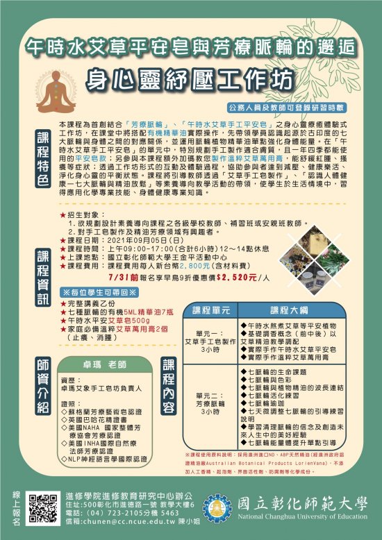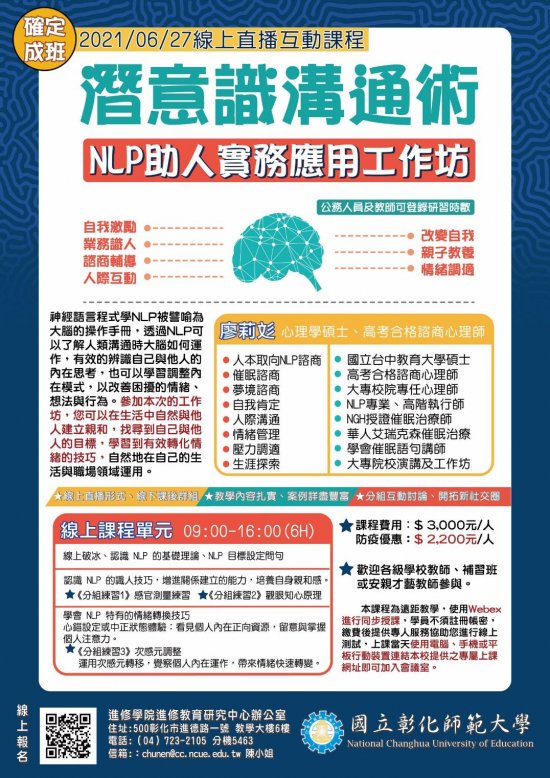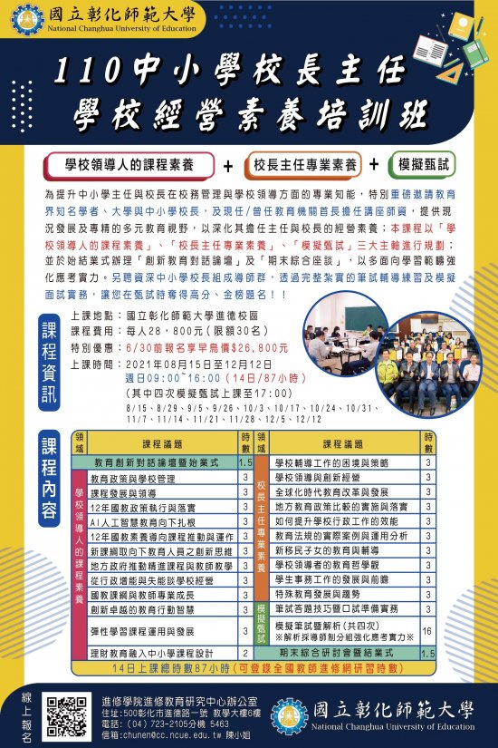 轉知國立彰化師範大學進修學院推廣教育課程招生簡章共3門課資訊