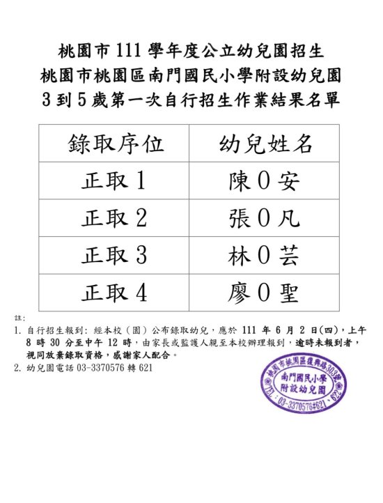 【桃園市桃園區南門國民小學附設幼兒園】
