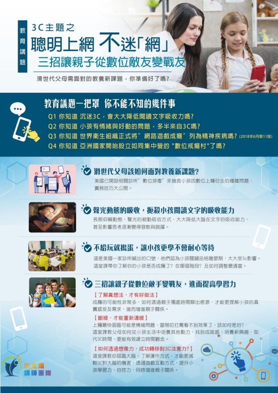 4.主題:聰明上網不迷網─三招讓親子從數位敵手變戰友